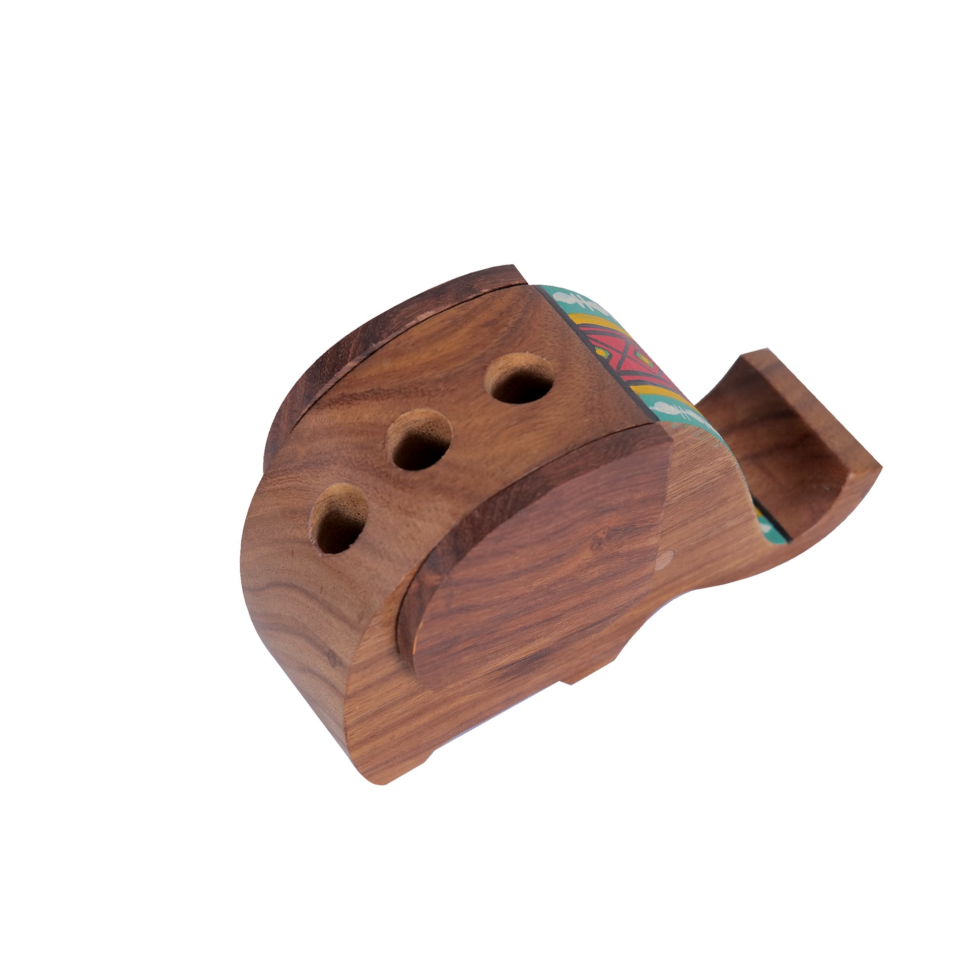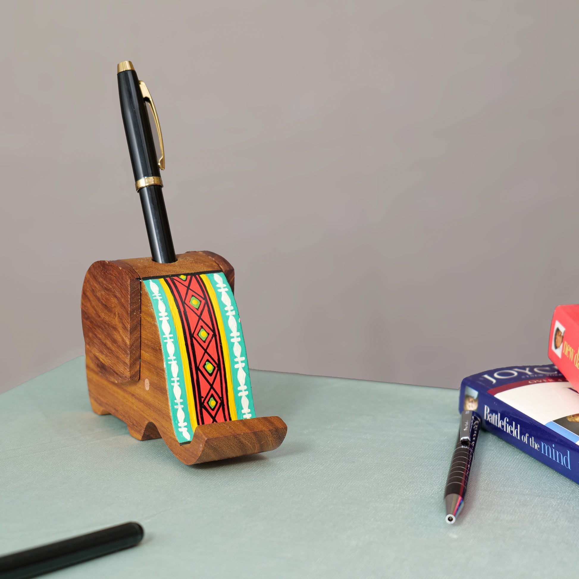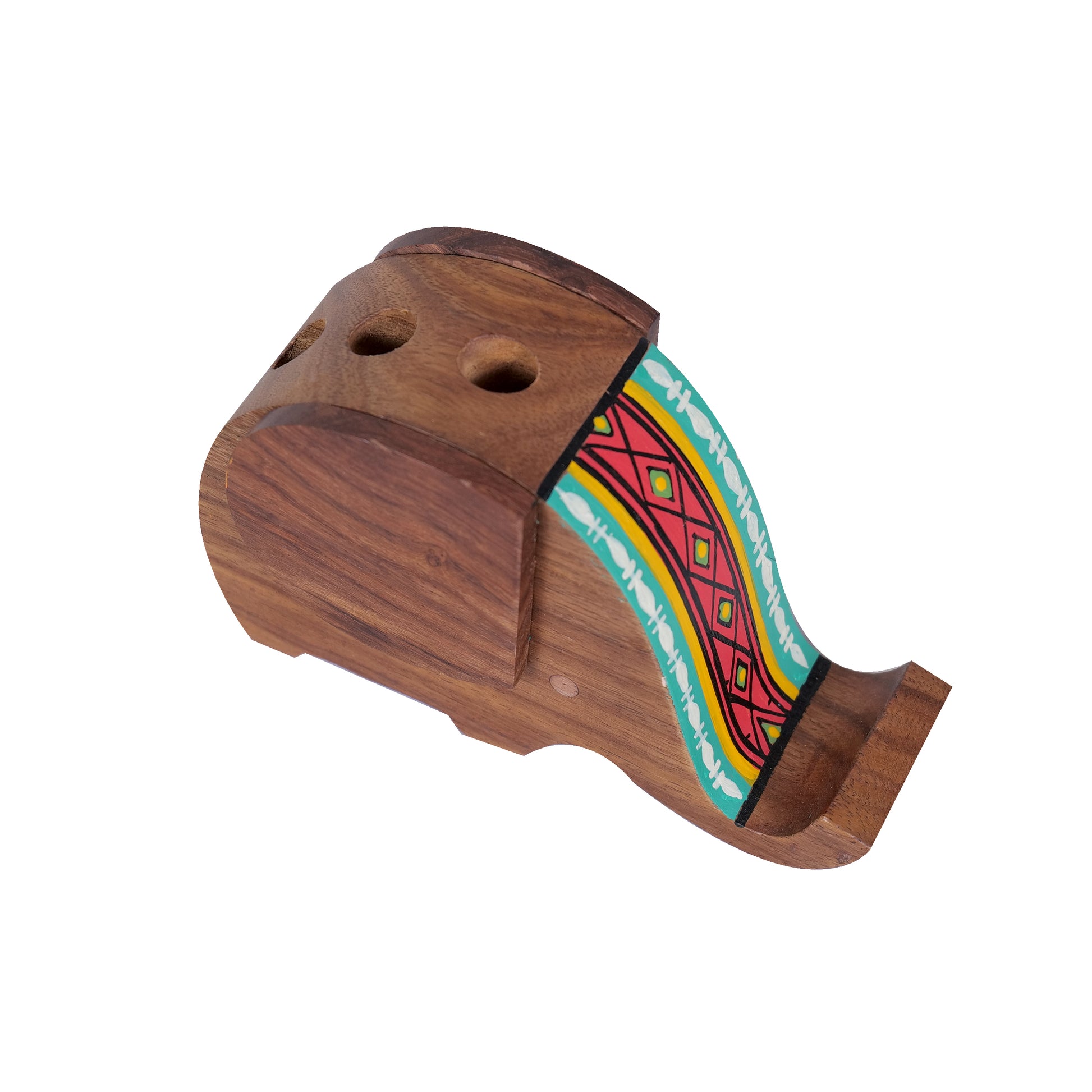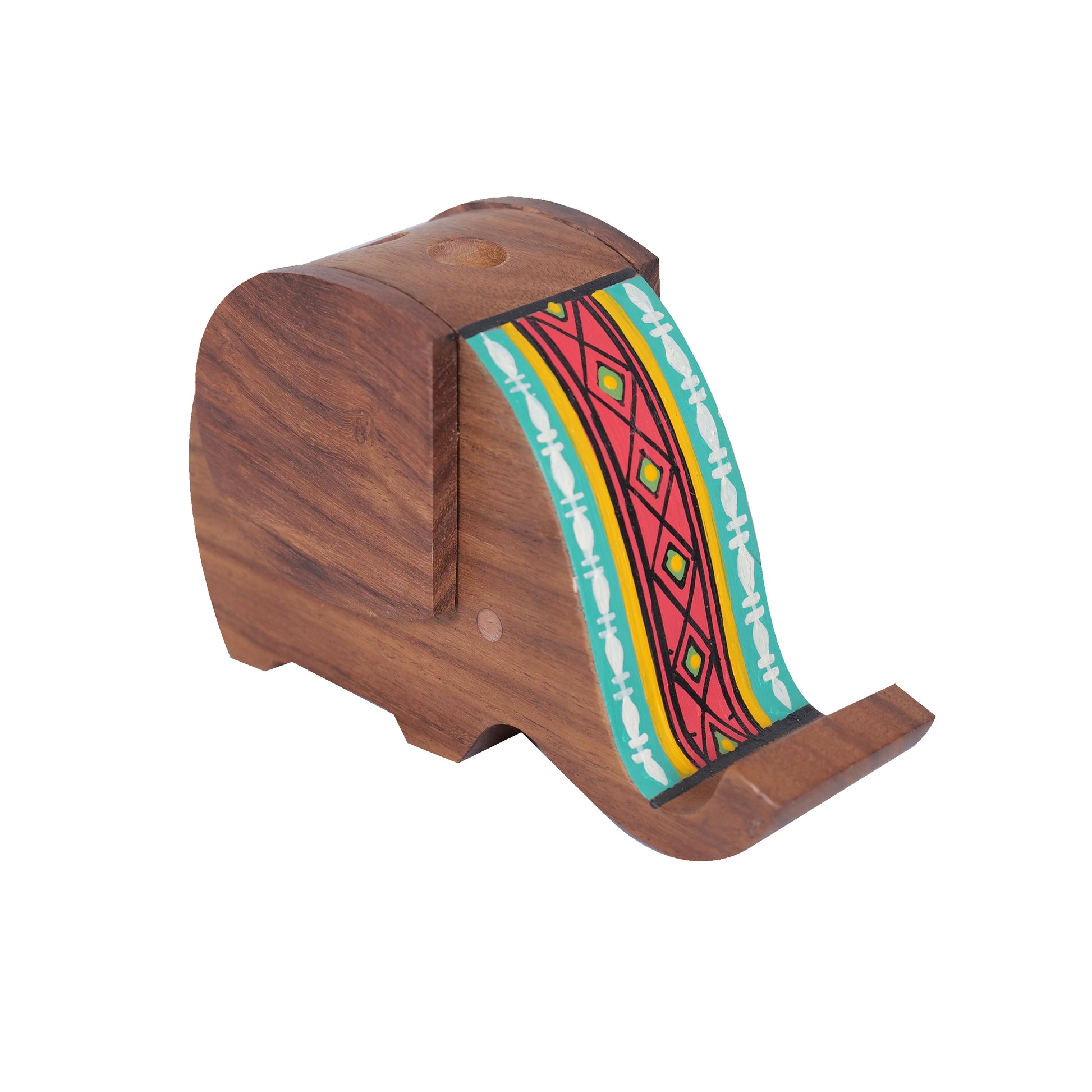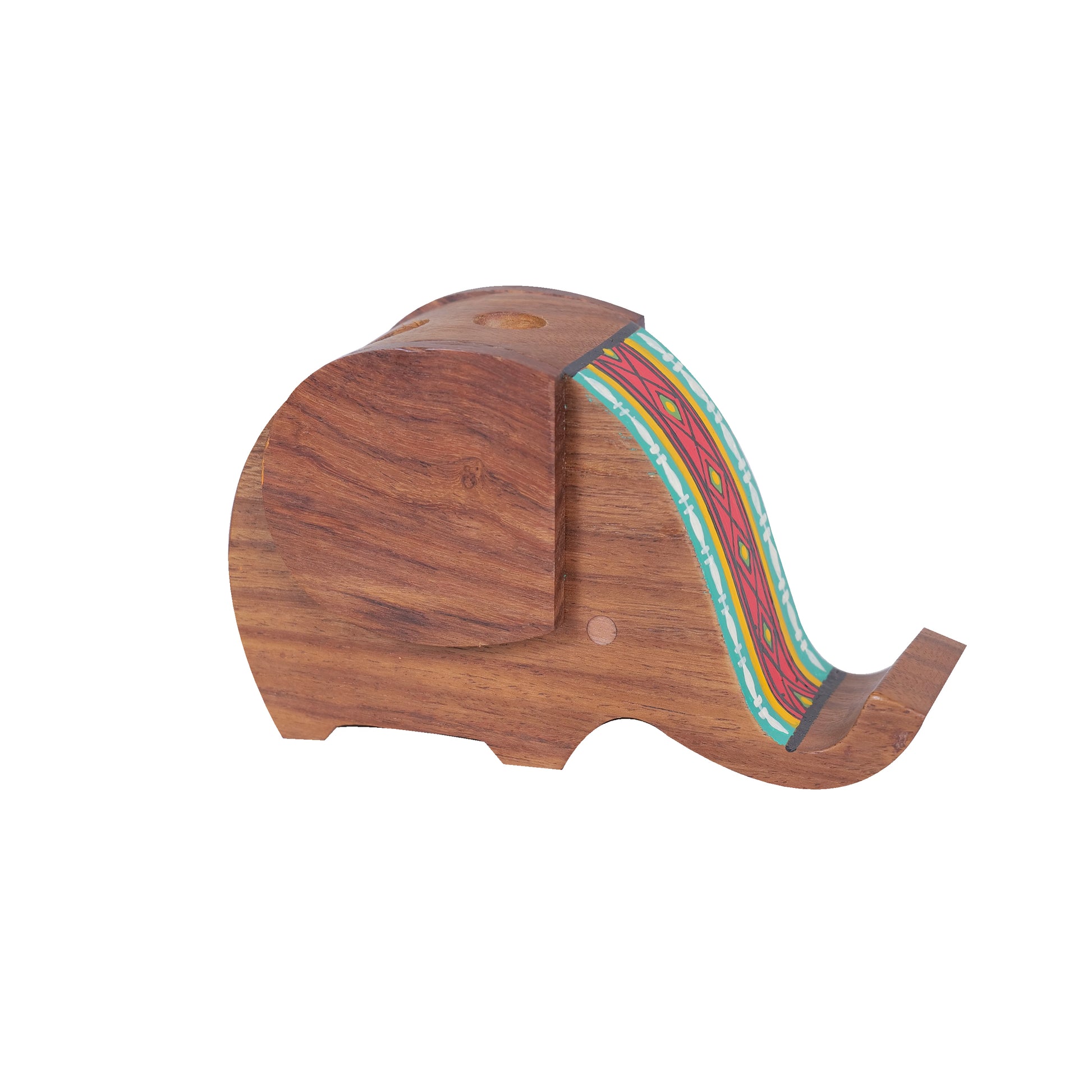 Wooden Handpainted Elephant Design Pen Cum Mobile Stand